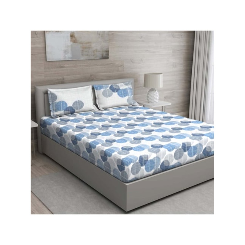 GR4670179030GM Blue & Grey 100% Cotton 144 TC Queen Bedsheet Set