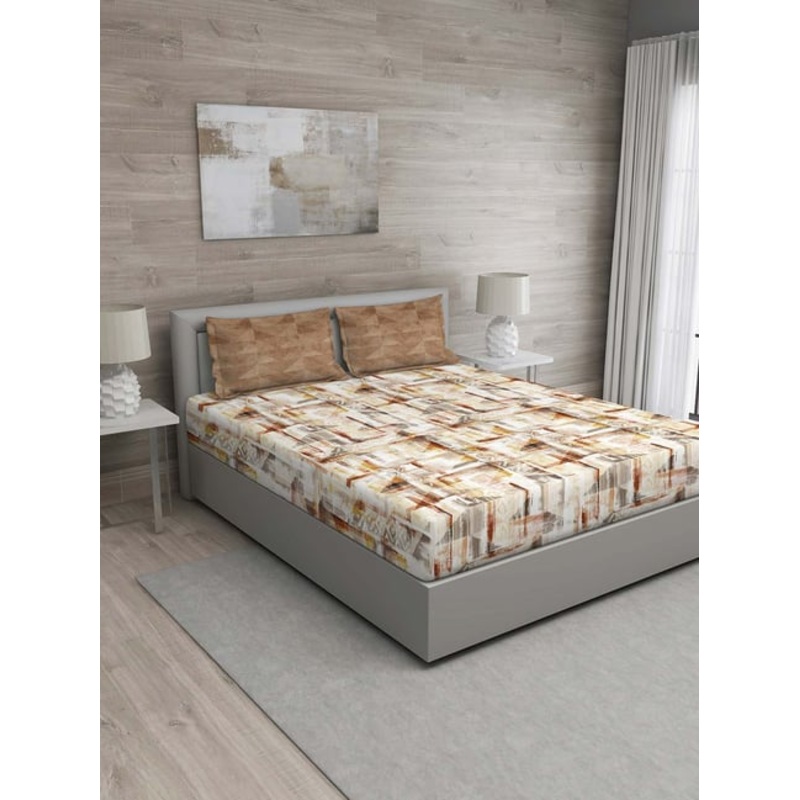 GR4670180055GM Brown 100% Cotton 144 TC Queen Bedsheet Set