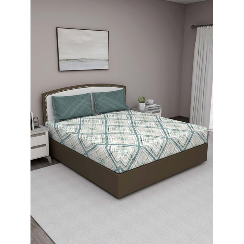 GR4670180042GM Green & Beige 100% Cotton 210 TC King Bedsheet Set
