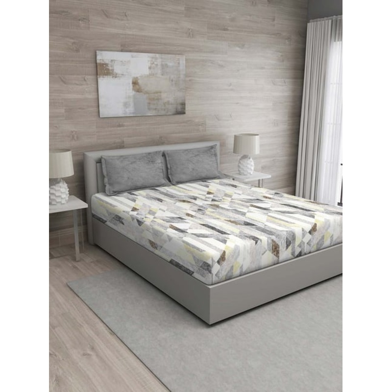 GR4670179664GM Grey 100% Cotton 150 TC Queen Bedsheet Set