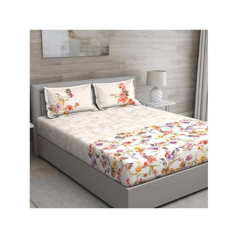 GM ‘Matthiola’ Beige Cotton 150 TC Double Bedsheet with 2 Pillow Covers