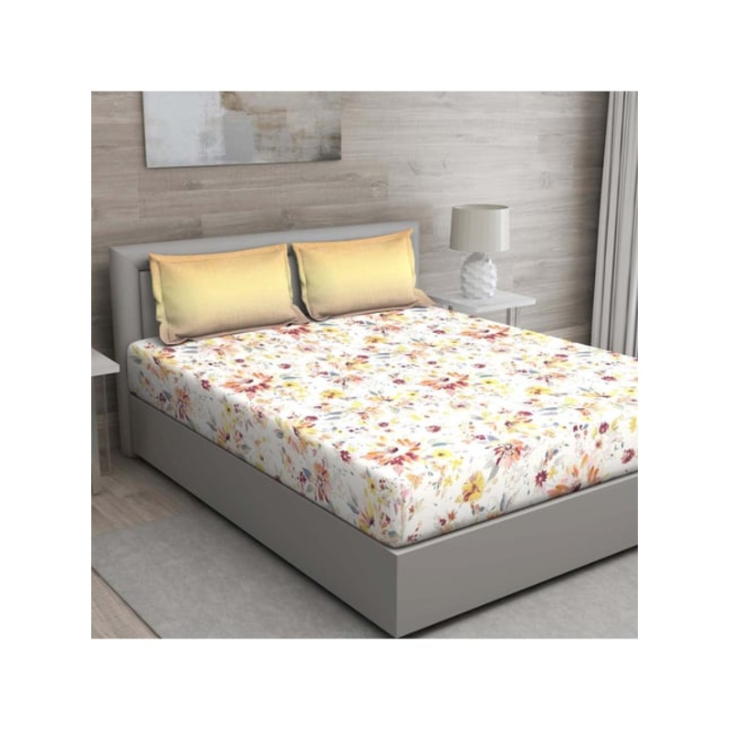 GM Orange & Yellow 100% Cotton 144 TC Queen Bedsheet Set