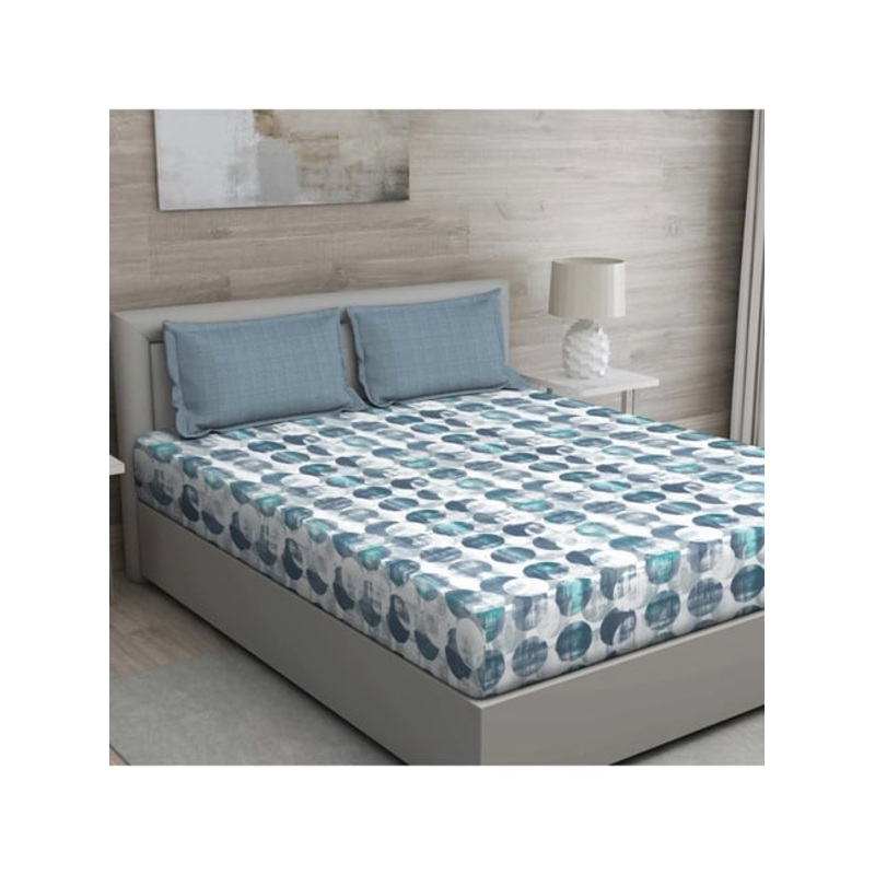 GM ‘Regal’ Blue & Grey Cotton 144 TC Double Bedsheet with 2 Pillow Covers