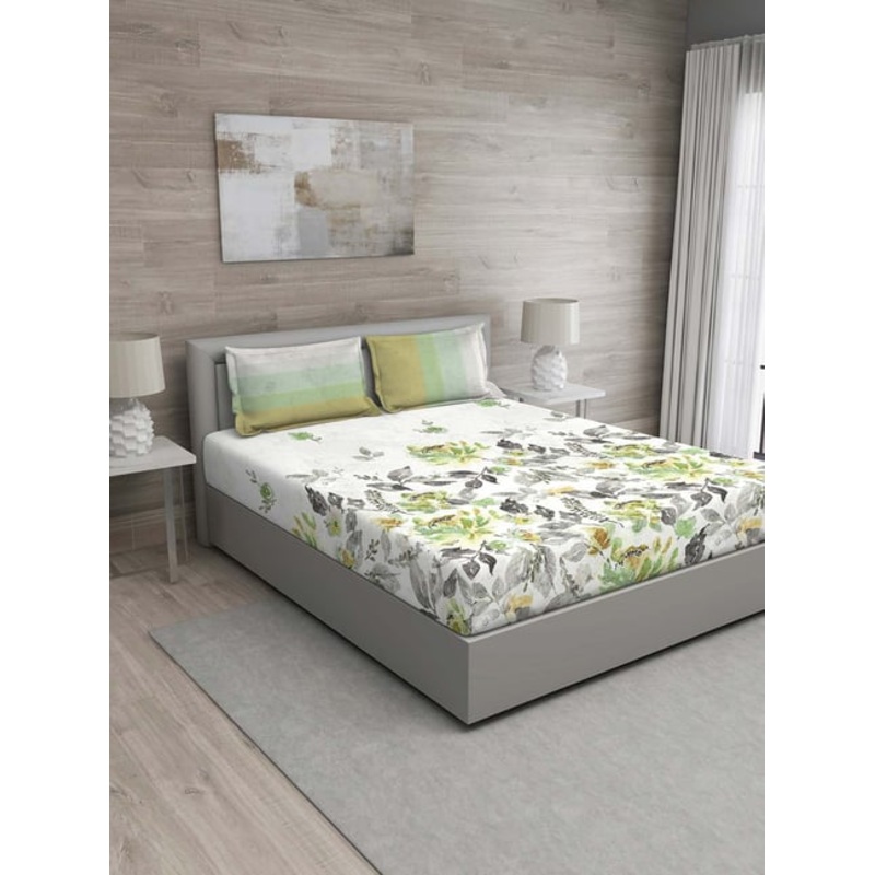GR4670178705GM White & Green 100% Cotton 144 TC Queen Bedsheet Set