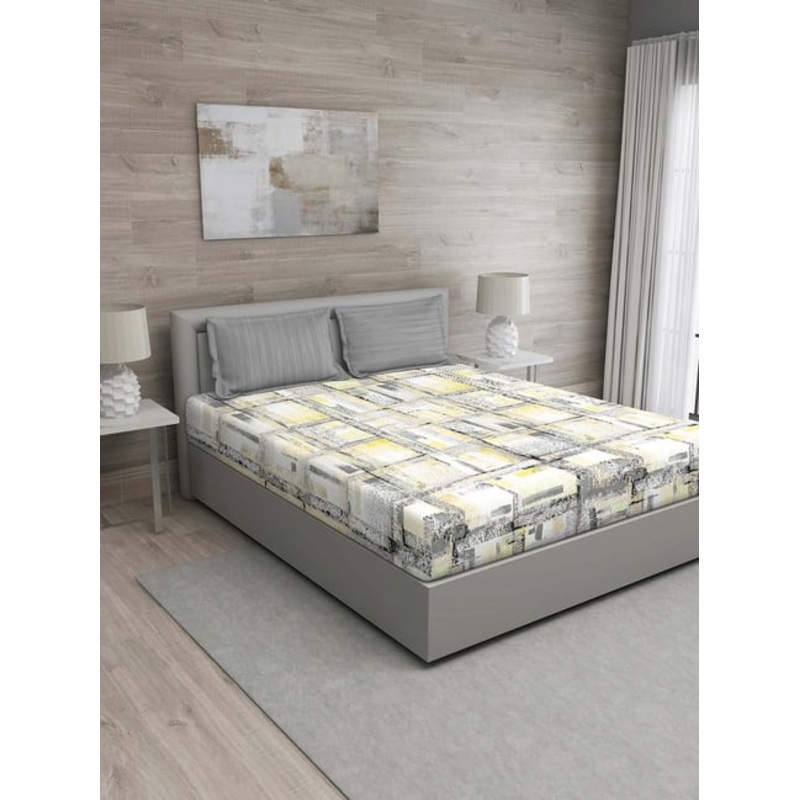 GR4670180244GM Yellow & Grey 100% Cotton 144 TC Queen Bedsheet Set