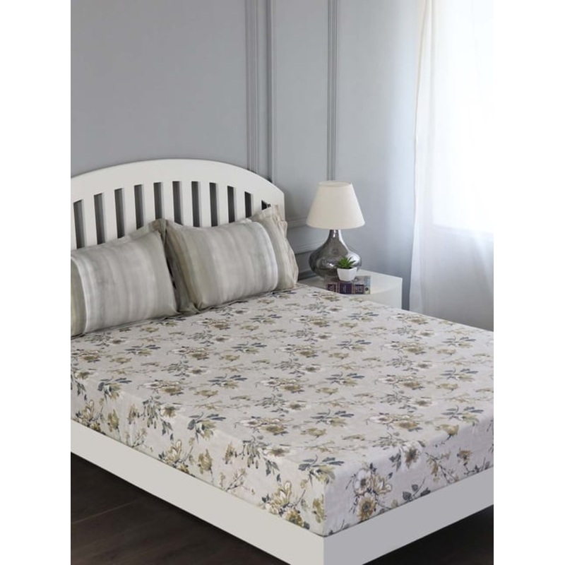 Pervade in the splendor of this grey and beige bed sheet set from GMF. Designed for every fashion-conscious homemaker, it has been crafted using cotton that gives it a soft feel. Flaunting a floral pattern, this bed sheet set with a thread count of 100 percent cotton assures endearing comfort to your tired nerves.