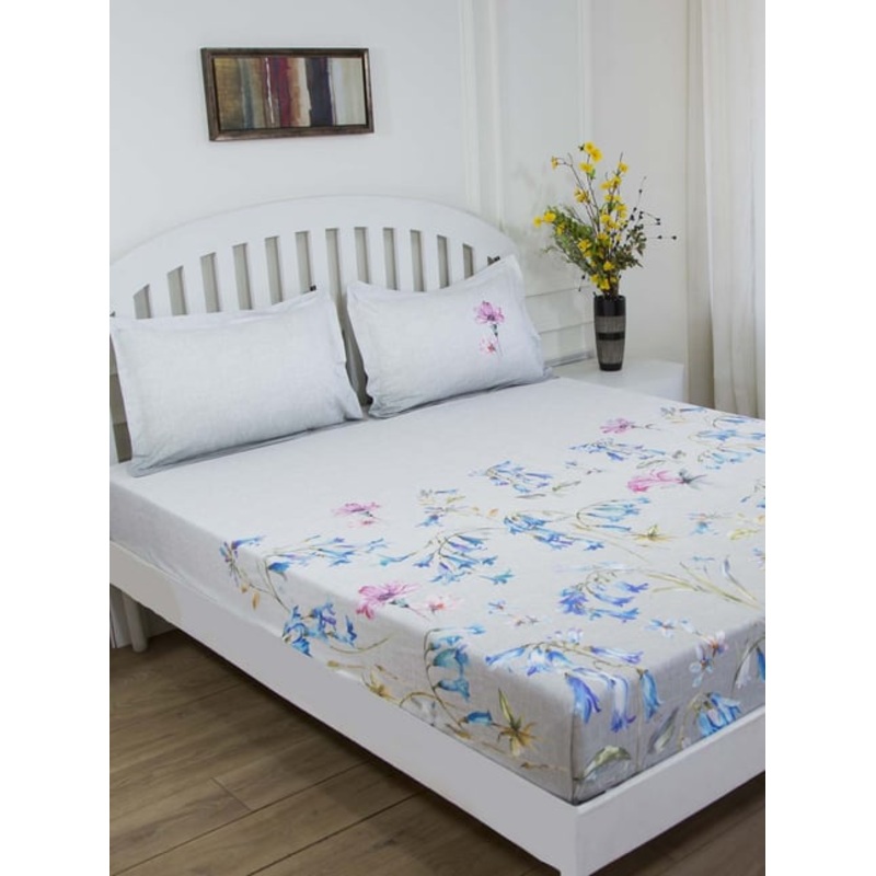 A wonderful mix of contemporary and classic tones, this grey and blue bed sheet set from GMF will add a dash of beauty to your bedroom. Tailored to perfection using cotton, this bed sheet set with a thread count of 100 percent cotton assures a soft and soothing touch against the skin. Showcasing a floral pattern, this bed sheet set will surely add grandeur to your bedroom.