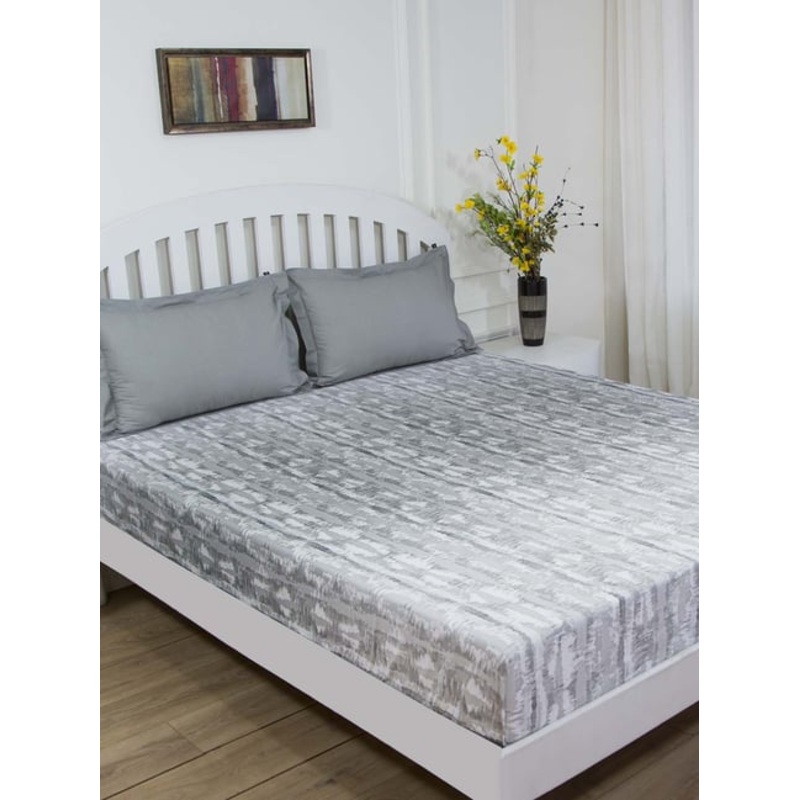 Get a soothing and relaxed feel with this grey bed sheet set from GMF. Crafted with care using cotton, this bed sheet set with a thread count of 100 percent cotton will be very soft against the skin. The digital print pattern of the bed sheet set adds opulence to your bedroom.