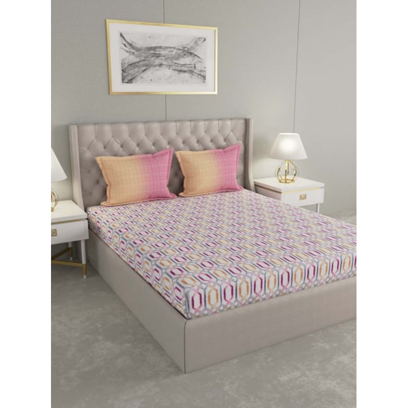 Lighten up your bedroom with this pink bed sheet set from GMF. Tailored to perfection using cotton, this bed sheet set with a thread count of 100 percent cotton assures a soft and soothing touch against the skin. Showcasing a digital print pattern, this bed sheet set will surely add grandeur to your bedroom.