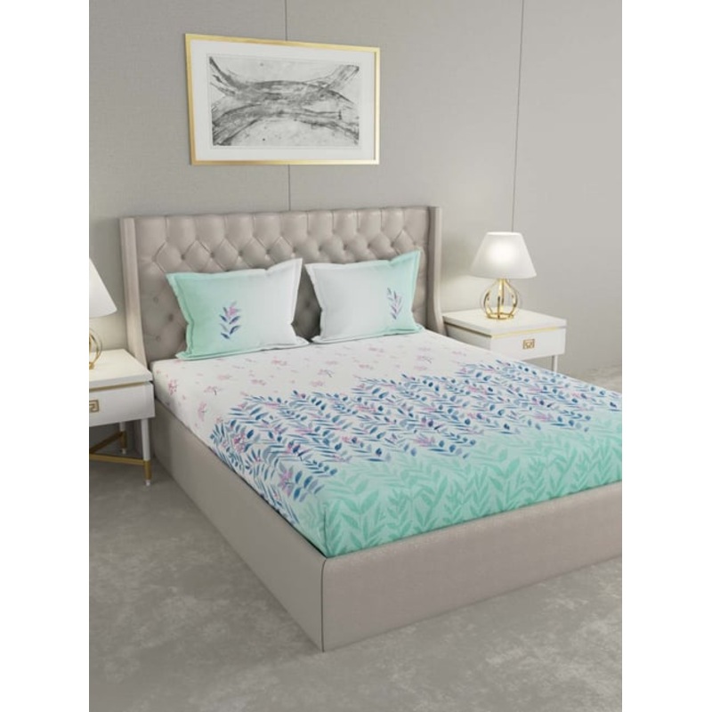 Give your bedroom a neat and refreshing look with this white and aqua bed sheet set from GMF. This bed sheet set with a thread count of 100 percent cotton will be very soft against the skin owing to the use of cotton. It reflects marvelous craftsmanship an