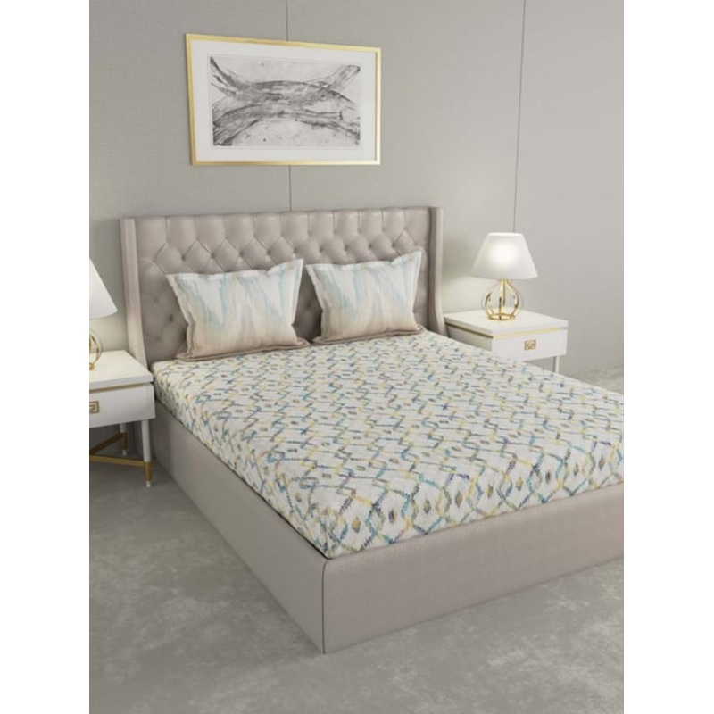 Elevate your bedroom decor by spreading this white and green bed sheet set from GMF. Manufactured using cotton, this bed sheet set with a thread count of 100 percent cotton is easy to maintain. This bed sheet set features a digital print pattern which reflects amazing craftsmanship. This striking piece will lend your bedroom a royal look.