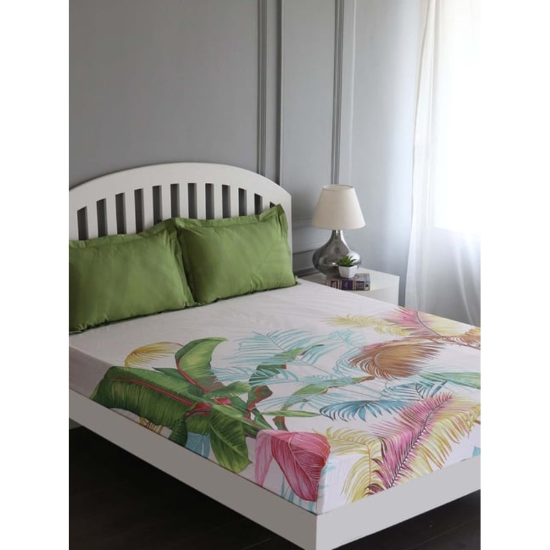 An ideal choice for renovating the look of your bedroom is this white and green bed sheet set from GMF. Crafted with care using cotton, this bed sheet set with a thread count of 100 percent cotton will be very soft against the skin. The floral pattern of t