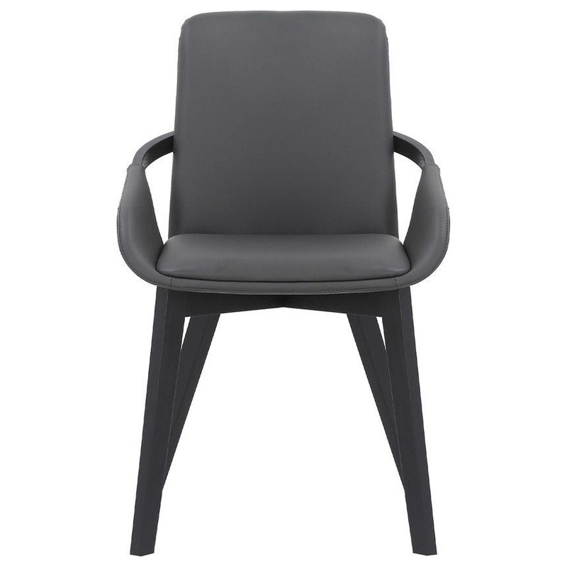 The Armen Living Greisen modern dining room chairs are the perfect furniture piece for your dining room, living room to serve as accent chairs, or desk area to serve as an office chair. The plush and thick foam-padded cushion and soft upholstery will provide you with all-day comfort. The high chair back with padded support is ideal for posture alignment and features unmatched support for days on end. The unique, durable wood frame of this product is unlike other dining room chairs, as it shapes the open bucket seat design and features black brushed wood accents that appear throughout the piece. The Greisen is available in your choice of charcoal fabric or gray faux leather upholstery.