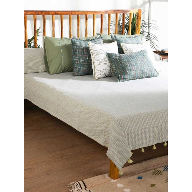 GR4670179337Grey Yellow Code Shadow Woven Cotton Double Bedcover