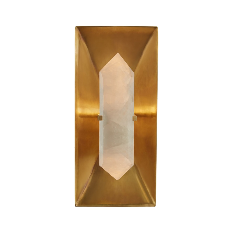 Bold, radiant, and sculptural, the Halcyon Rectangle Sconce by Visual Comfort and designer Kelly Wearstler makes a luminous statement with its rich mix of materials. A faceted crystal quartz shard floats within a geometric brass shell, creating an ethereal