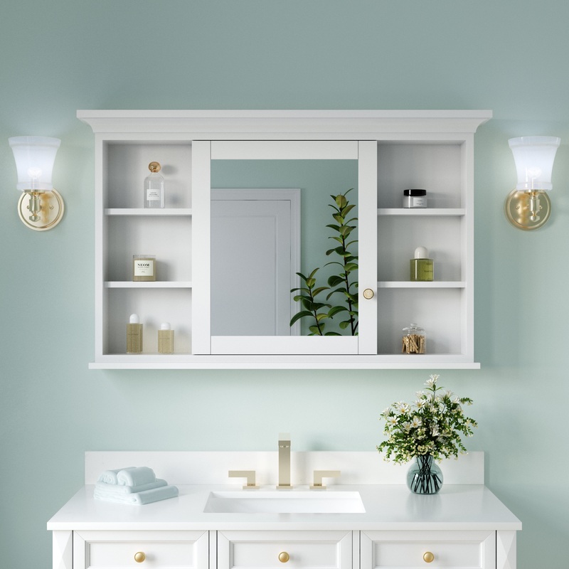Handmade Solid Wood Medicine Cabinet with Ample Storage Space in White – Contemporary – Medicine Cabinets – by Wellfor Group INC-EA4830MC-WT-SA
