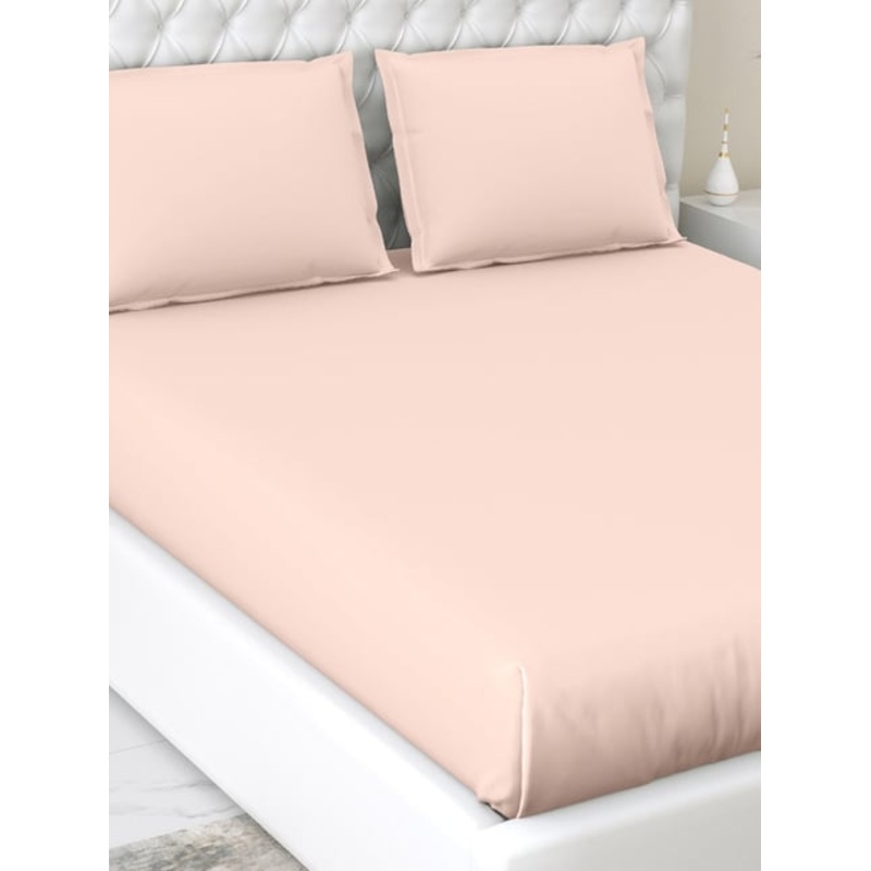 Make bedtime your favorite time with this irresistibly soft set of 1 king size fitted bedsheet and 2 pillow covers from Haus & Kinder. Crafted from breathable cotton using a thread count of 300 TC, this bedding set ensures a cool and comfortable night’s sleep. It is designed to exceed your expectations in comfort and durability.