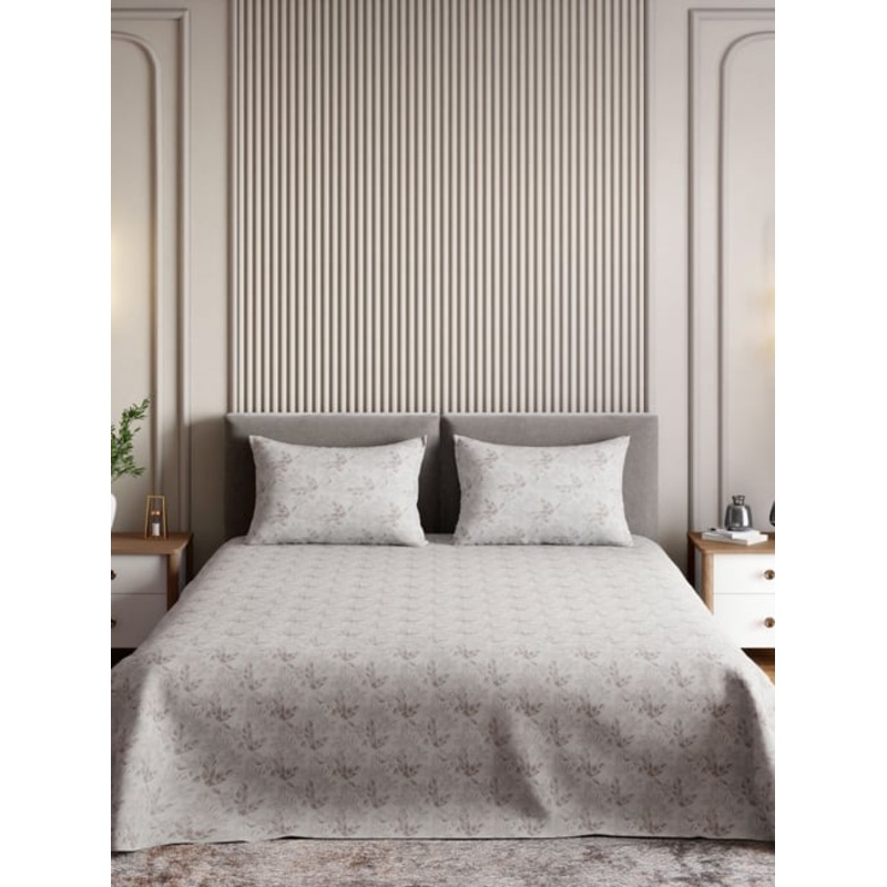 Transform your bedroom into a cozy oasis with the haus & kinder clouddrape signature collection brown printed bedsheet. Made from luxurious 300 thread count cotton, this double flat sheet comes with 2 matching pillow covers for a cohesive look. The intrica