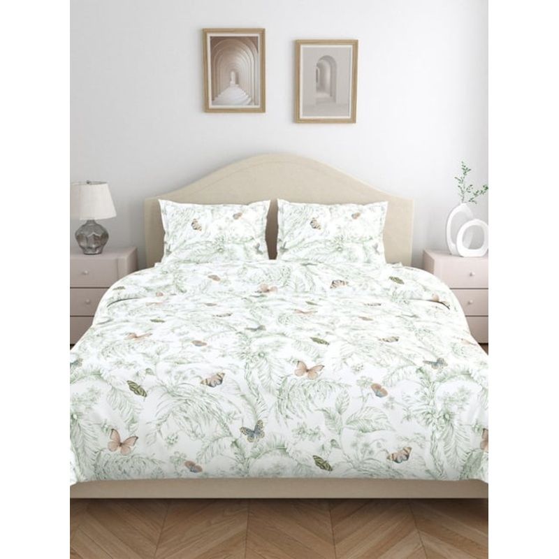 Haus & Kinder Cotton Green Nordic Palm 144 TC Double Flat Bedsheet with 2 Pillow Covers