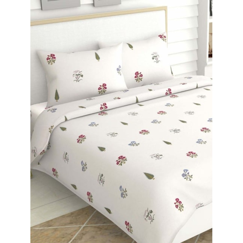 This set of 1 printed bedsheet from the PINK BLOSSOMS collection by Haus and Kinder has floral motifs done in jewel tones of amethyst and jade to create a classic timeless Indian print. Crafted from cotton, it has a TC of 186 as well. The printed pattern renders it a beautiful look.