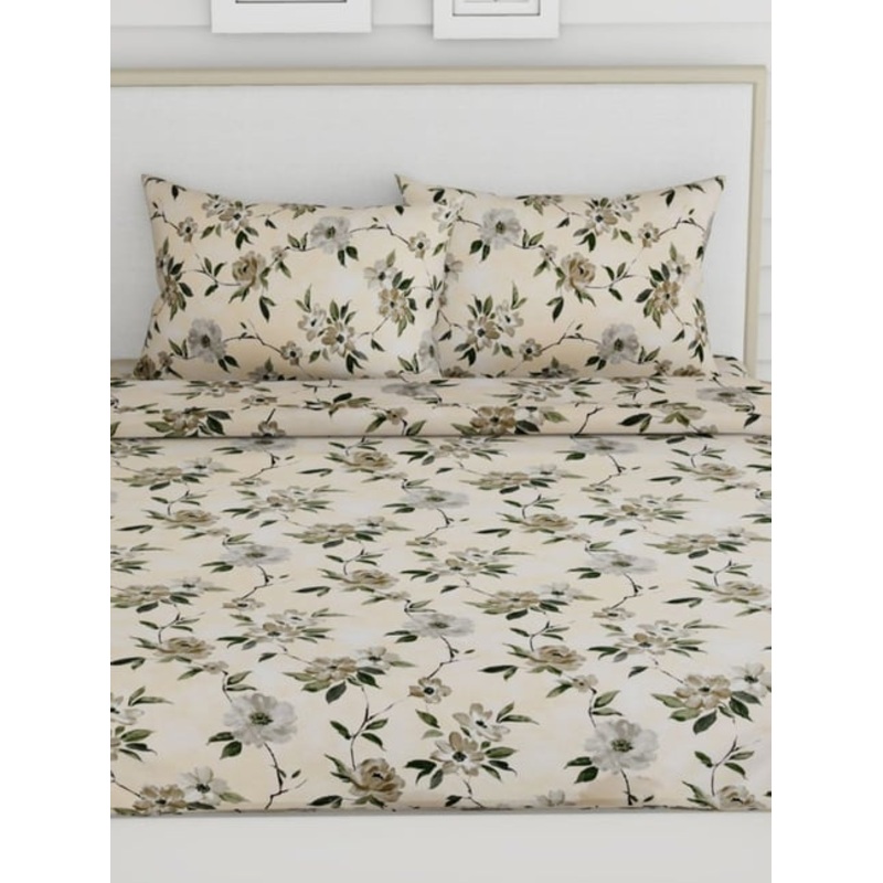 Haus & Kinder Greek Garden Romance Yellow & Greem 186 TC Cotton King Bed Sheet with 2 Pillow Covers