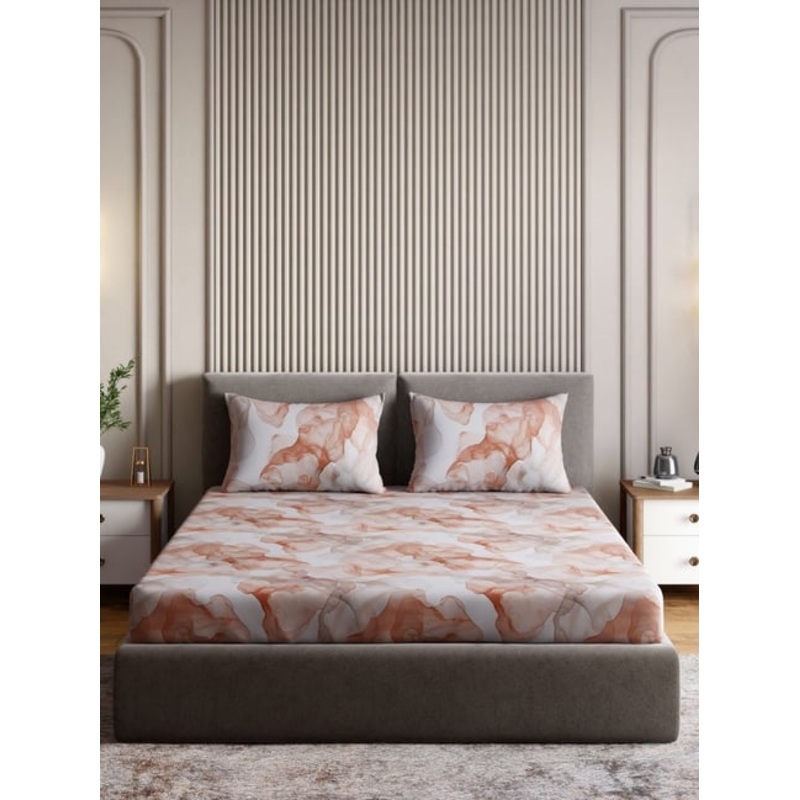 Haus & Kinder Muted Harmony Multicolor Abstract 210 TC King Fitted Bedsheet with 2 Pillow Covers