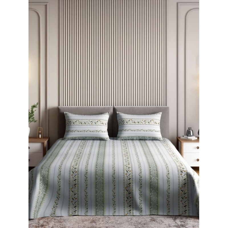 Indulge in luxury with the haus & kinder royal saga green floral 186 tc king flat bedsheet with 2 pillow covers. Made from premium quality fabric, this set not only adds a touch of elegance to your bedroom dcor but also ensures a cozy and comfortable night