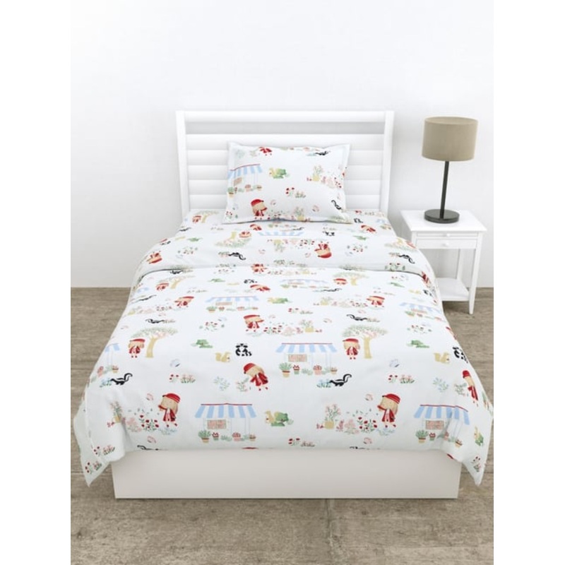 Transform your bedroom with the haus & kinder scarlet multicolor printed 210 tc single flat bedsheet with 1 pillow cover. Made from high-quality material, this vibrant and stylish bedding set adds a touch of elegance to any room. The 210 thread count ensur