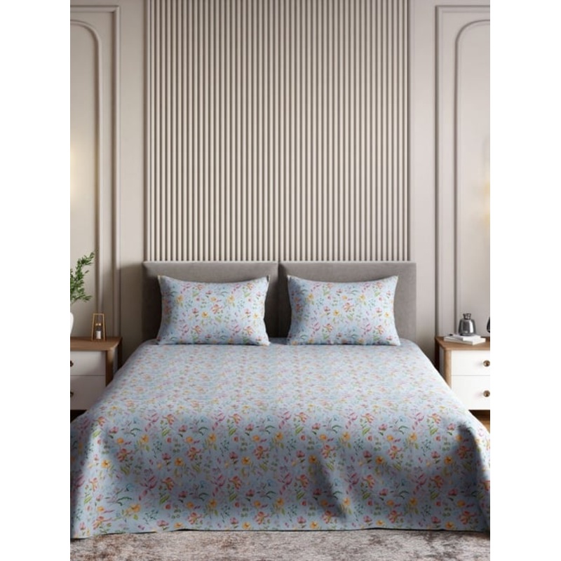 Indulge in luxurious comfort with the haus & kinder soft embrace multicolor floral king flat bedsheet. Made with a high-quality 210 thread count, this bedding set offers a soft and smooth feel that will envelop you in relaxation. The vibrant multicolor floral design adds a touch of elegance to your bedroom decor, while the set includes 2 matching pillow covers for a complete look. Transform your bedroom into a stylish sanctuary with this beautiful and cozy bedding set.