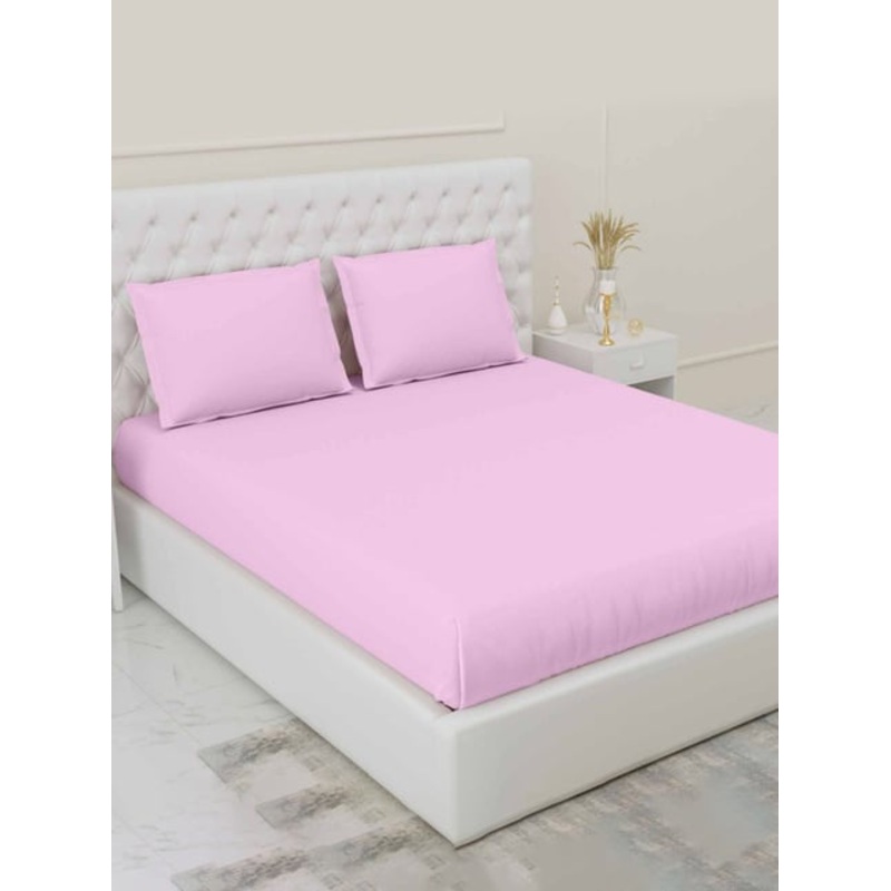GR4670181053Haus & Kinder Solid Pink 300 TC Cotton Bed Sheet with 1 Pillow Cover