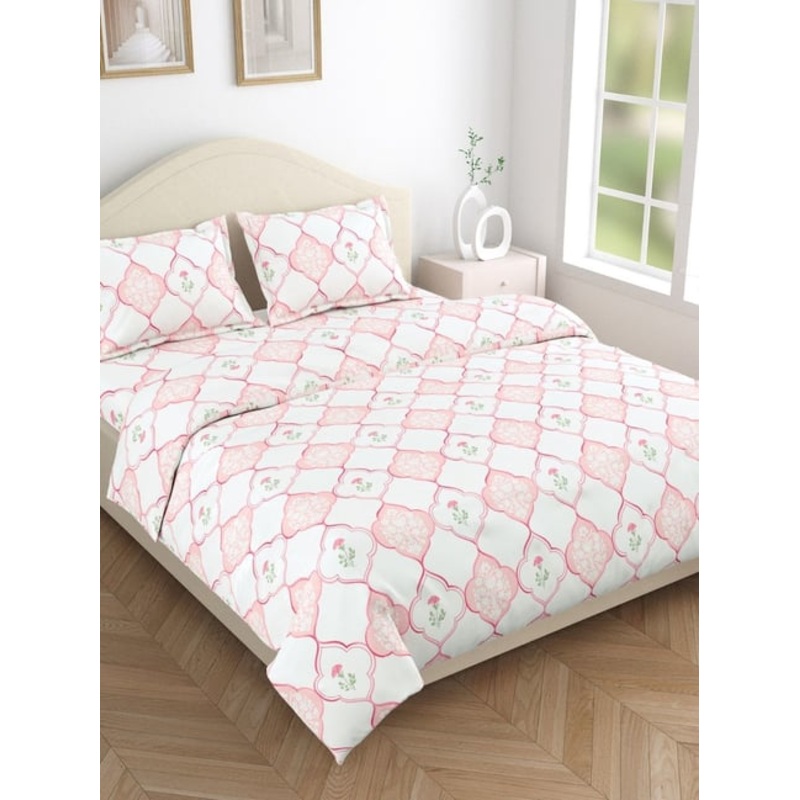 Indulge in softness with this beautifully crafted set of 1 king size flat bedsheet and 2 pillow covers from Haus & Kinder. Crafted from breathable cotton using a thread count of 186 TC, this bedding set ensures a cool and comfortable night’s sleep. It is designed to exceed your expectations in comfort and durability.