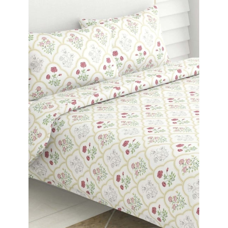 Enhance the sophistication of your home interiors by adorning your bed with this set of 1 rose serenity printed king bedsheet and 2 pillow covers from Haus & Kinder. Crafted with cotton having a cotton weave and a thread count of 180 TC, it features shrinkage resistance for all-season use. Create an impression on your near and dear ones that lasts.