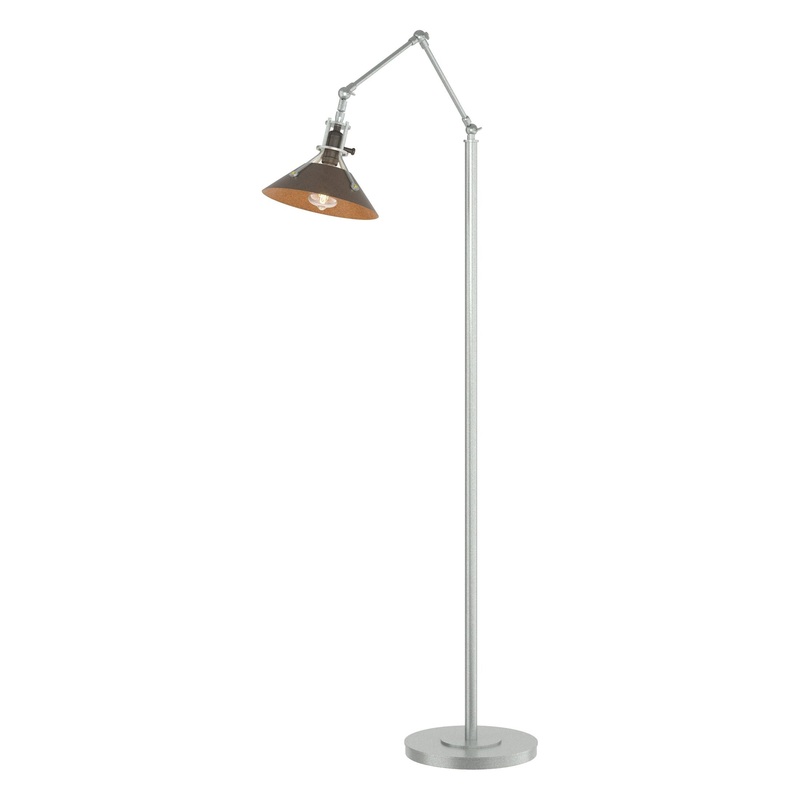 Our Henry Floor Lamp with its brass-riveted, spun- metal shade and stark design delivers a strong industrial vibe. A close look will reveal a level of craftsmanship beyond the norm. Hand-crafted by artisans here at our Vermont forge each piece is unique.