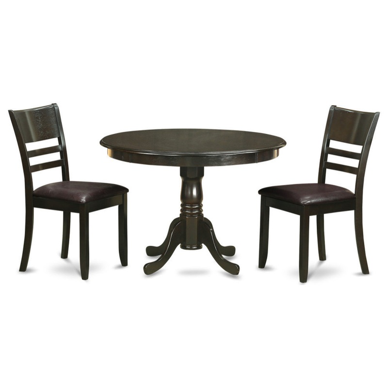 -This 3 piece dinette kitchen table set includes one dinette round table with 2 drop leaves and 2 ladder back