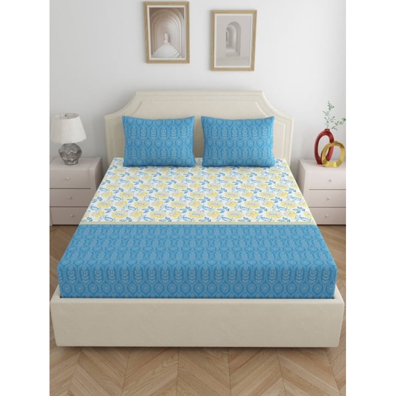 Home Ecstasy Crystal Wave Cotton Floral 140 TC Double Bedsheet with 2 Pillow Covers