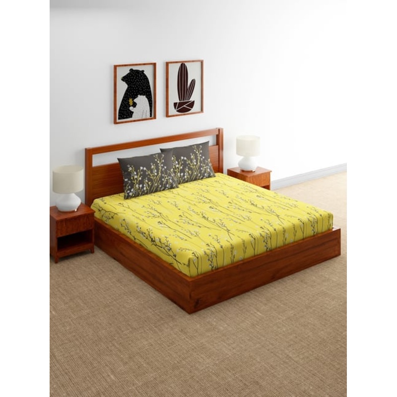 Enjoy A Restful Night & Year-Round Comfort with Home Ecstasy Double bedsheet with 2 pillow covers. Crafted from 100 Percent Cotton, this 140 TC bedsheet offers breathability, softness and a cool feel during the night, ensuring you sleep comfortably.