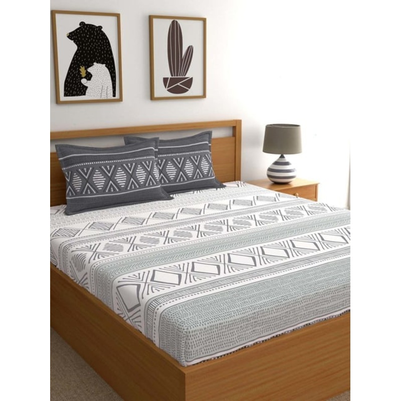 Home Ecstasy Grey Cotton 140 TC Double Bedsheet with 2 Pillow Covers