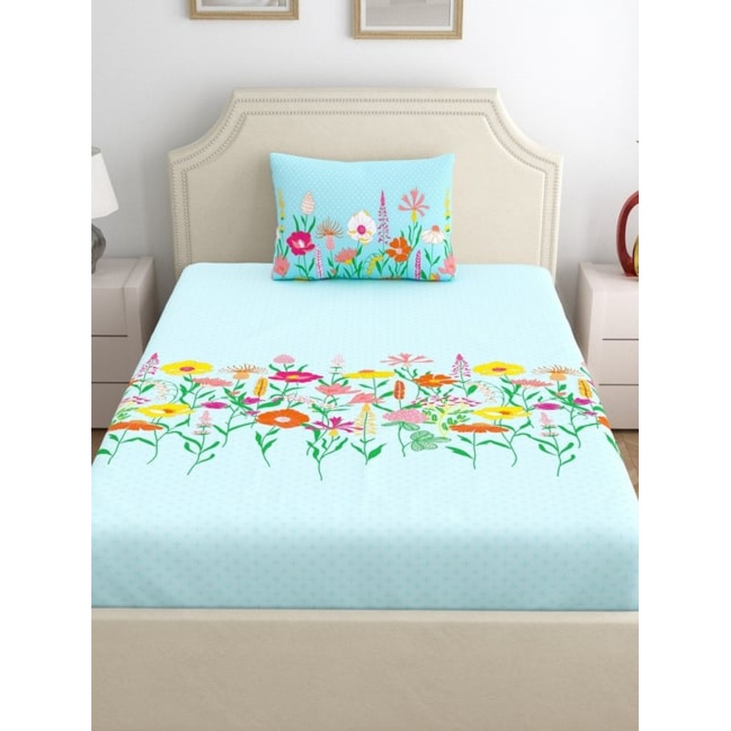 Transform your bedroom into a tranquil oasis with our Home Ecstasy snowdrift blue cotton floral bedsheet. Crafted from luxurious 140 tc cotton, this single bedsheet comes with a matching pillow cover for a complete look. The serene blue hue and delicate fl