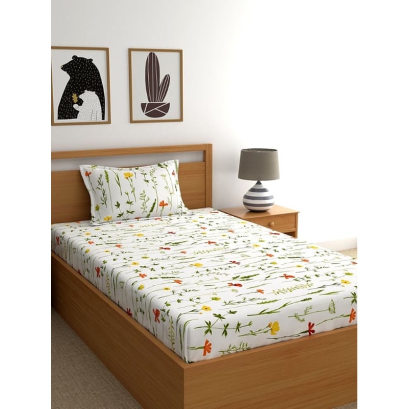 Refresh the decor of your room with this single-sized bedsheet set from Home Ecstasy. It is crafted to perfection using premium quality cotton having a 140 thread count that ensures a soothing touch against your skin. The floral pattern makes it an alluring choice. It comes in a set of 1 bedsheet and 1 pillow cover.