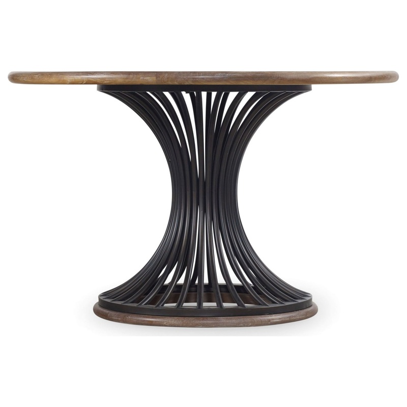 All furniture purchases are final. If furniture arrives damaged or is defective please call for assistance (800) 375-3403. Furniture Return Policy A network of metal chords cinched in the center form the table’s pedestal base. Forty-eight-inch tabletop completes the look, pending chairs of your choice. All Studio 7H dining chairs are candidates! Have you noticed that imagination can be more real than reality? You’ll want to come sit by us then, just around the corner at Studio 7H. Pick the Studio 7H pieces that you love and watch things come together. Great items work the room or go their own way. Just like your best parties. Unplanned, often random, but always perfect. And totally real. Features: Wire brush on top Adds a traditional style to any room Constructed from acacia and metal for durability and style Will require simple assembly upon arrival Includes a 1 year limited manufacturer warranty About Hooker Furniture: Hooker Furniture is a third generation family based business that has been providing luxury heirloom quality furnishings to homes across the United States since 1925. Headquartered in Virginia, with locations and manufacturing in both Virginia and North Carolina. The nation’s heart of fine furniture manufacturers. Most of Hooker Furniture’s pieces are manufactured right here in the United States. With Hooker Furniture’s outstanding quality and genuine love for well-made furnishings, those pieces not manufactured in the United States are hand picked and held to the highest standards of construction, sustainability, and design.