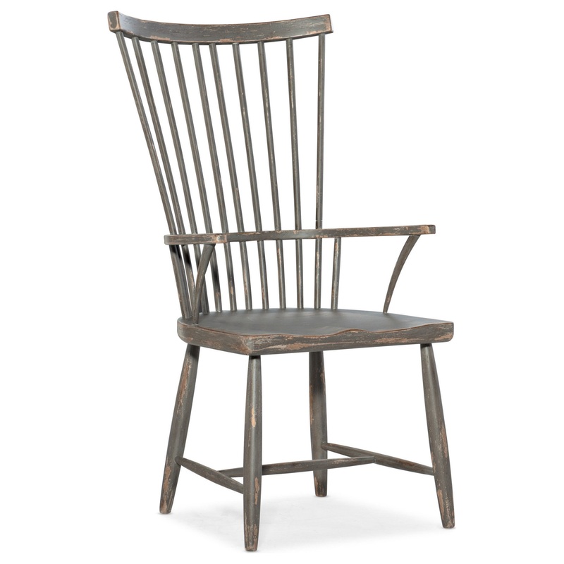 All furniture purchases are final. If furniture arrives damaged or is defective please call for assistance (800) 375-3403. Furniture Return Policy. The classic spindle-back Windsor chair gets a European provincial flair with the exquisite silhouette of the Marzano Windsor arm chair. Crafted of hardwoods, the dark finish has an organic and vintage appeal. Features: Constructed of hardwood Comes with a manufacturer defect warranty only Some assembly required Wood seat Spindle back Floor glides Hooker Furniture recommends dusting frequently with a clean, soft, dry, lint-free cloth. Clean the surface by rubbing in the direction of the grain. Hooker Furniture recommends polishing your furniture approximately every six months using a clean, soft, lint-free cloth and rubbing the polish in the direction of the grain. Guardsman furniture polish or any furniture polish that doesn’t contain silicone is recommended Dimensions: Dining chair: 23-1/2″W x 44″H x 25-3/4″D