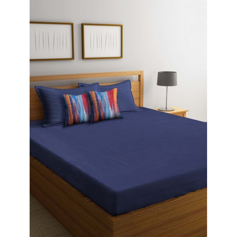 Enliven your bedding space with this king-sized bed linen set from HOSTA HOMES. Crafted from cotton satin with 300 thread count, it is the perfect choice for your room. Featuring a striped pattern, it will surely add a contemporary look to your bedroom reflecting your classy choice. The set comprises 1 bed sheet and 2 pillow covers and 2 filled cushions that will be an ideal gifting option for your dear ones.