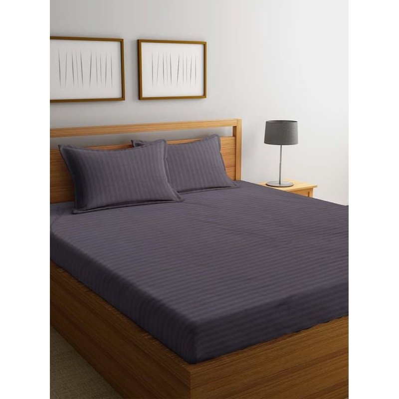 Elegant and attractive, this grey bed sheet and pillow cover set from HOSTA HOMES will hug the bed perfectly. Exuding a striped pattern, it will add class to your room. This set is crafted from cotton with 280 TC and will be soft against your skin and can