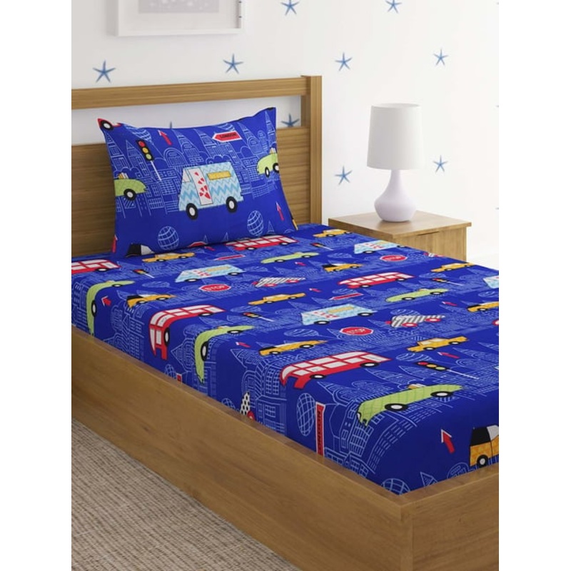 Exhibit your love for art by decorating your bed with this single-sized bedsheet set from HOSTA HOMES. To endear a comforting feel to your tired nerves, this set is crafted from 220 GSM polycotton. Showcasing a toon printed pattern, this set will exude a royal grandeur look to your room. It comes in a set of 1 bedsheet and 1 pillow cover.