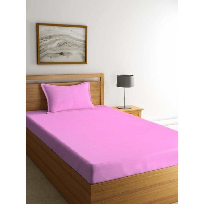 Add a refreshing zeal to your bedroom with this bedsheet set from HOSTA HOMES. Crafted with care using superior quality cotton satin with a fabric quality of 210 TC, it gives a soft feel. This set with a striped pattern will create a zestful aura in your room. It comes in a set of 1 single-size bedsheet with 1 pillow cover.