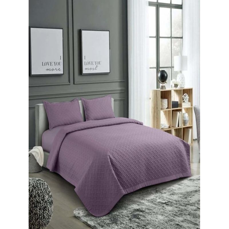 Hosta Homes Purple 280 TC Polycotton Quilted Queen Bedsheet with 2 Pillow Covers