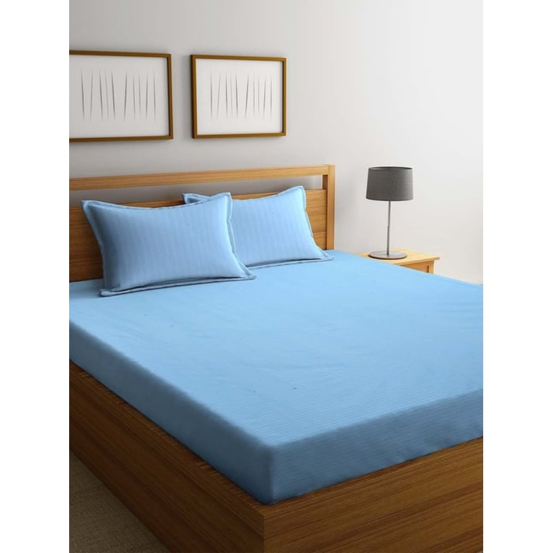 Elegant and attractive, this sky blue bed sheet and pillow cover set from HOSTA HOMES will hug the bed perfectly. Exuding a striped pattern, it will add class to your room. This set is crafted from cotton with 280 TC and will be soft against your skin and can be used all year round. It comes in a set of 1 bed sheet and 2 pillow covers.