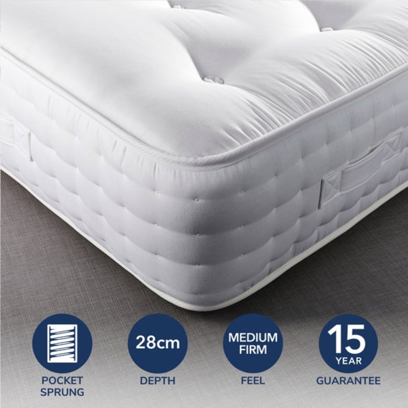 1000 individual pocket springs plus 4000 mini springs to limit disturbancesFirm Support ideal for back sleepers100% Cotton Cover added breathabilityEco-polyester Filling made from recycled polyester fibresWool Comfort Layer naturally temperature regulating