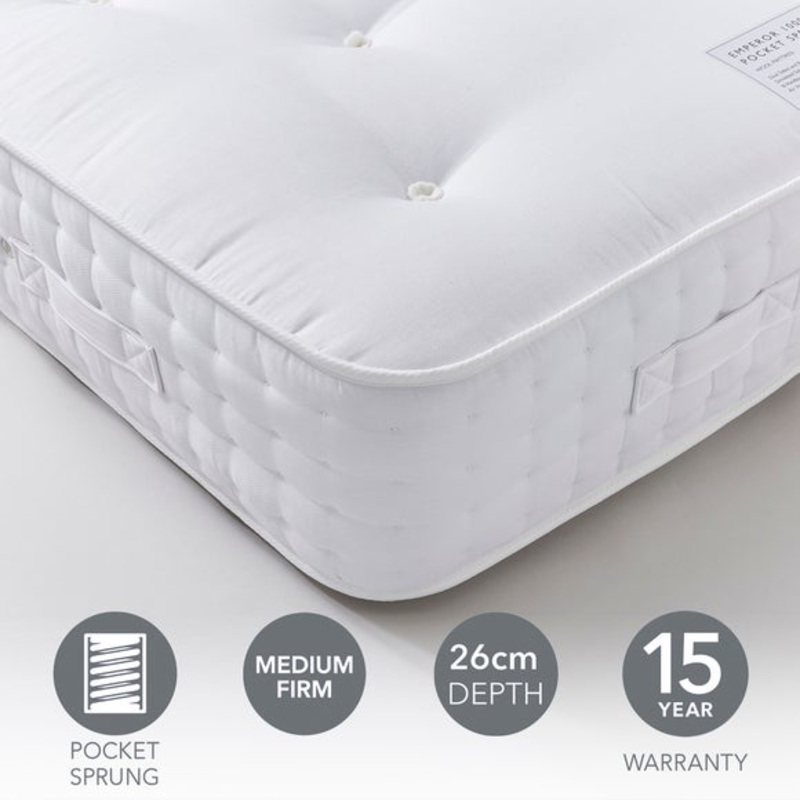 Enjoy the luxury of a hotel in your own home with our Hotel Emperor Mattress. Featuring 1000 springs encased in individual pockets, this premium mattress minimises movement disturbances from restless sleepers and responds to your bodys natural movement. This mattress has a firmness grading of medium making it ideal for front and back sleepers.