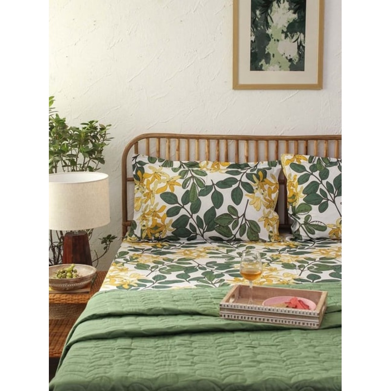 Enhance the beauty of your bedroom interiors with this bed sheet set from House This. It is durably crafted with cotton. It gives a graceful and modern look to any bedroom. It retains its vibrant color, providing the needed charm to complete any bedroom which lasts a lifetime. It comes in a set of 1-bed sheet and pillow covers.
